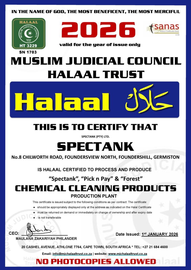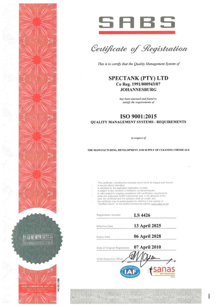 Spectank® se fundó en Sudáfrica en 1991 tras la continua búsqueda de un producto seguro para eliminar la grasa carbonizada en los utensilios de cocinas industriales. Desde entonces, se ha expandido por el mundo. Está presente en 40 países gracias a su sistema novedoso y eficaz en la limpieza de utensilios de cocina, y cuyo gran éxito se debe principalmente al ahorro de costos que supone su implementación, la seguridad laboral y el cuidado del medio ambiente, dado que utiliza un detergente biodegradable y que permite ahorrar agua. En la actualidad cuenta con la confianza de más de 30,000 clientes satisfechos alrededor del mundo.